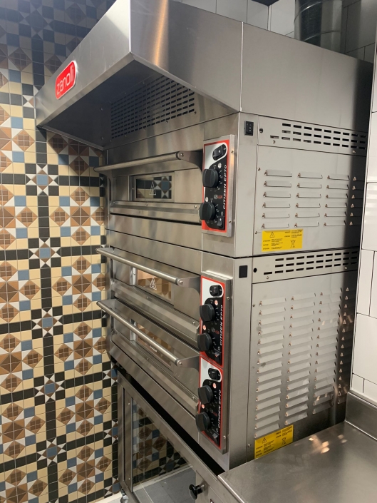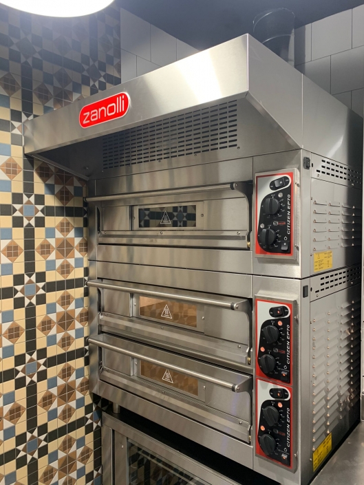 Ha sido un proyecto pequeño a nivel de espacios, sin embargo hemos conseguido un excelente resultado colocando un horno de pizza de 3 camaras, fermentadora, amasadora, mesas de trabajo en inox a medida, zona de preparación y zona de barra.