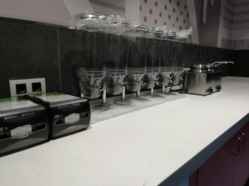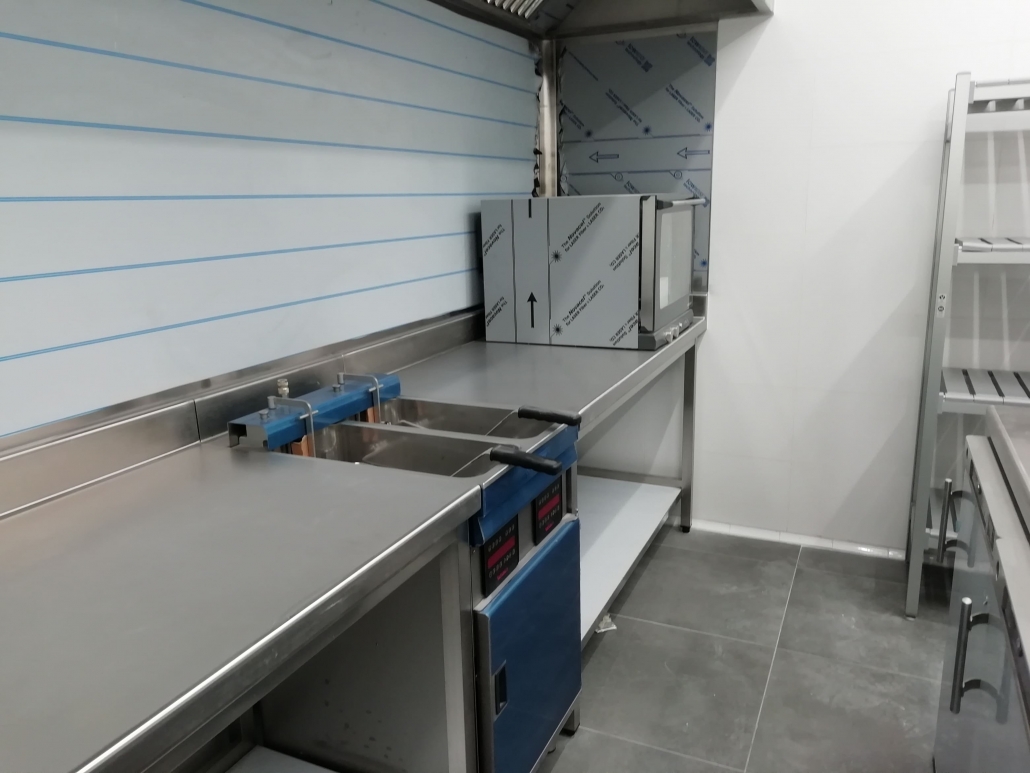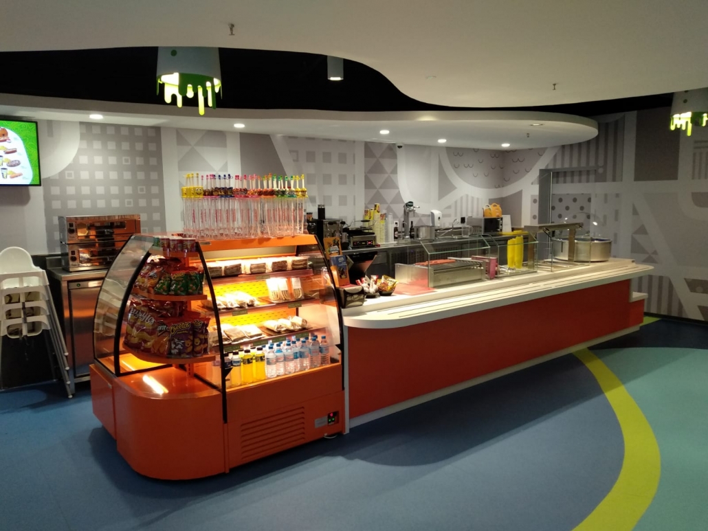 El Equipamiento Hostelero consta de una cocina completa con Extracción, aportación, Sistema de Extinción de Incendios tipo ANSUL, freidoras de alto rendimiento, zona de lavado, Recinto Panelado de refrigeración y congelación. Zona de Cafeterías con Líneas de Autoservicio a medida tematizadas, decoradas y Encimeras en Corian. Línea Bebidas con dispensadores de Refrescos Lancer. Zona Helados y Granizados con máquinas de helados soft de autoservicio.