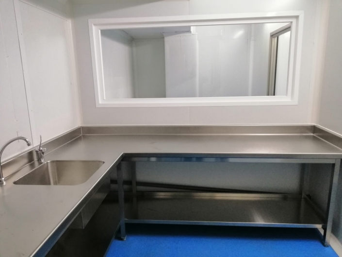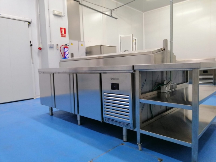 Cuenta también con cuartos de preparación frio y cámaras frigoríficas de refrigeración y congelación.