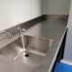 El proyecto consta de muebles en acero inoxidable a medida con encimera de corian blanco. Encastrada hemos colocado una mesa fría de ingredientes.